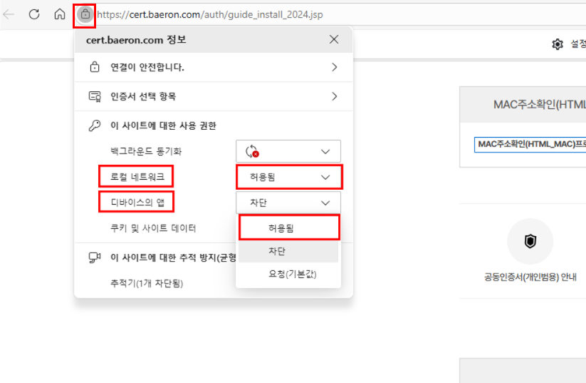 ¾Ë¸²Ã¢ÀÌ ¾È ¶ß°Å³ª ÀÌ¹Ì ¡¸Â÷´Ü¡¹À» ´©¸¥ °æ¿ì → [Chrome/Edge ¼³Á¤ → °³ÀÎÁ¤º¸ º¸È£ ¹× º¸¾È → »çÀÌÆ® ¼³Á¤ → ÇöÀç »çÀÌÆ® ¼±Åà → ¡¸·ÎÄà ³×Æ®¿öÅ© ¾×¼¼½º¡¹¶Ç´Â ¡¸µð¹ÙÀ̽º ¾Û¡¹ Çã¿ë]